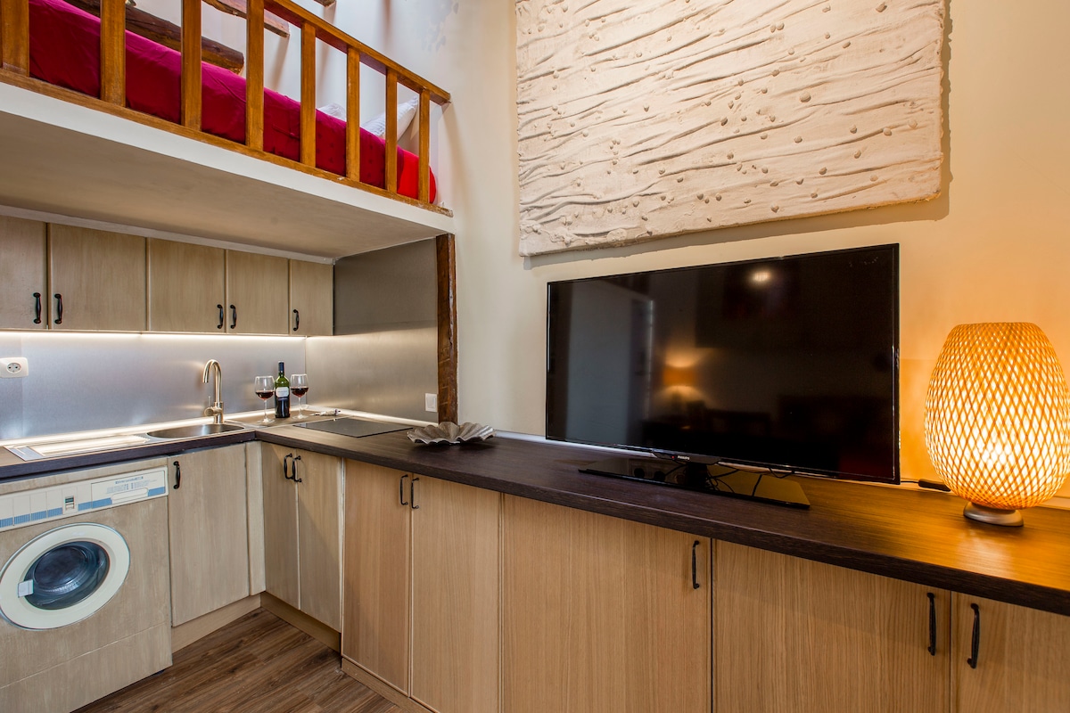 新翻修的老麵包店,位於工業閣樓風格的單間公寓。 就在馬德裏最真實、最有趣的街區之一的街道上。 專為2人設計,可供4人入住,客廳開放空間有2張額外牀位。 位於馬德里市中心,距離皇宮、東方廣場等地5分鐘。在有趣的La Latina街區,有很多生活和酒吧。 空調已於2024年6月安裝。 完成(不共用)。 價格視乎旅人人數而定