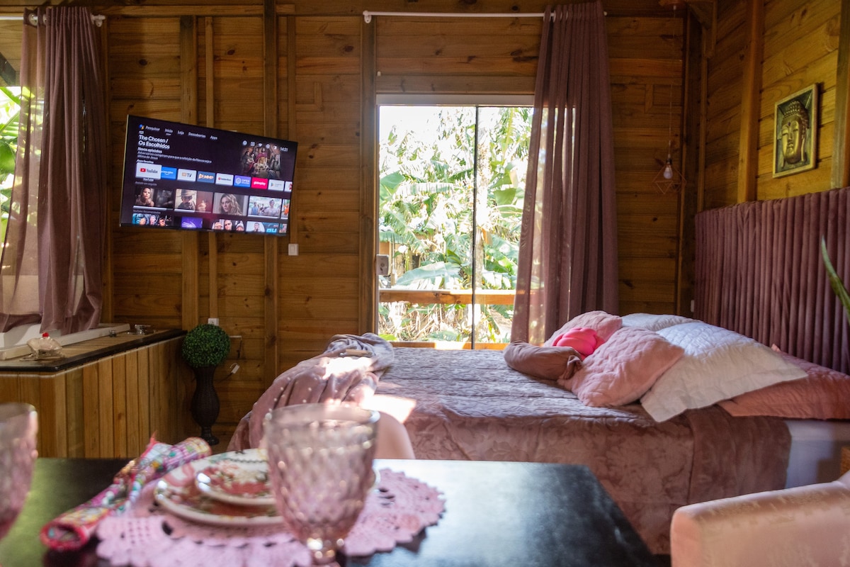 在這個安靜、時尚的空間中放鬆身心。 我們的度假木屋融入了本土森林,經常來自野生鳥類。 提供和平與溫暖。 靠近Palhoça最美麗的海灘和Guarda do Embaú等地區域。 Pinheira ,夢想中的海灘。高海灘(國際天然主義)。 Gamboa等地是英裏河瀑布, 距離這裡只有一英裏多。 原因不夠你墜入愛河。