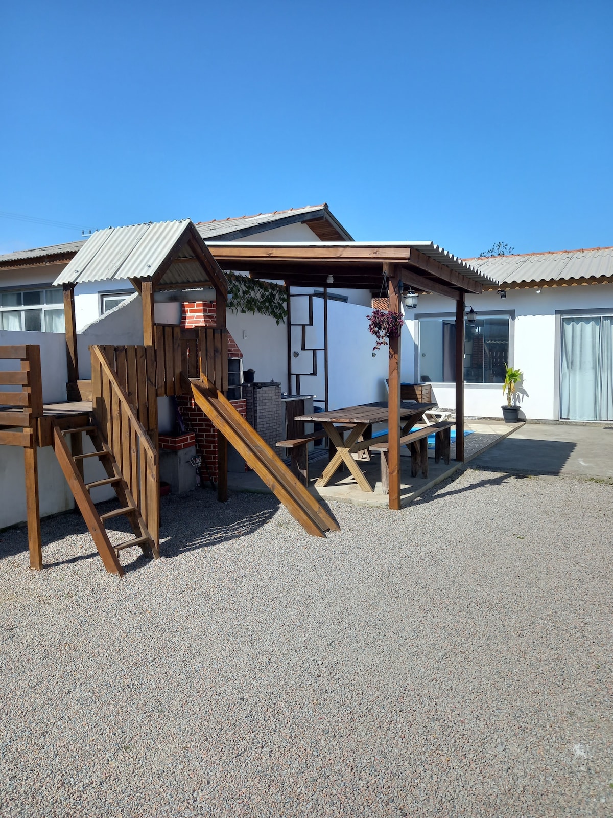 寬敞的房子,有3間臥室。 第一間臥室:1 間套房,配有低床、衣櫃和空調。第二間臥室配有雙人床、衣櫃和空調。 1間社交浴室。 二樓:夾層配有沙發床和智慧電視。 第三間臥室配有雙人床、衣櫃和空調。 客廳和廚房。 室外區域有燒烤設備、吊床、質樸的沙發可供放鬆。 一間沒有淋浴的浴室。 花園、室外淋浴。 停車位。