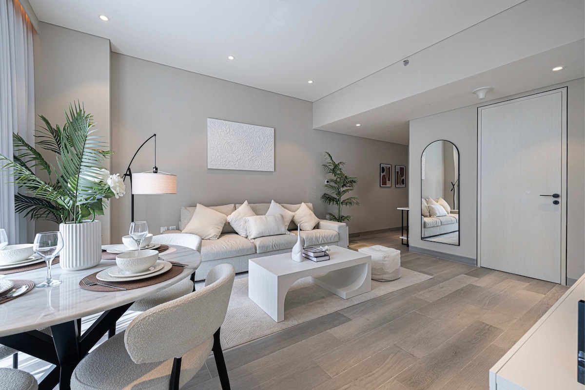 Our thoughtfully designed 1-Bedroom Family Apartment is located in the heart of Dubai's Palm Jumeirah, just opposite the famous Nakheel Mall. The apartment has a fully equipped kitchen and is situated within a fully-serviced 5-Star lifestyle hotel, the Andaz Dubai The Palm by Hyatt. The apartment provides you with access to a range of amenities, such as access to the community's beach and family pool overlooking Burj Al Arab, several restaurants and adults-only relaxation areas (Ora Spa).