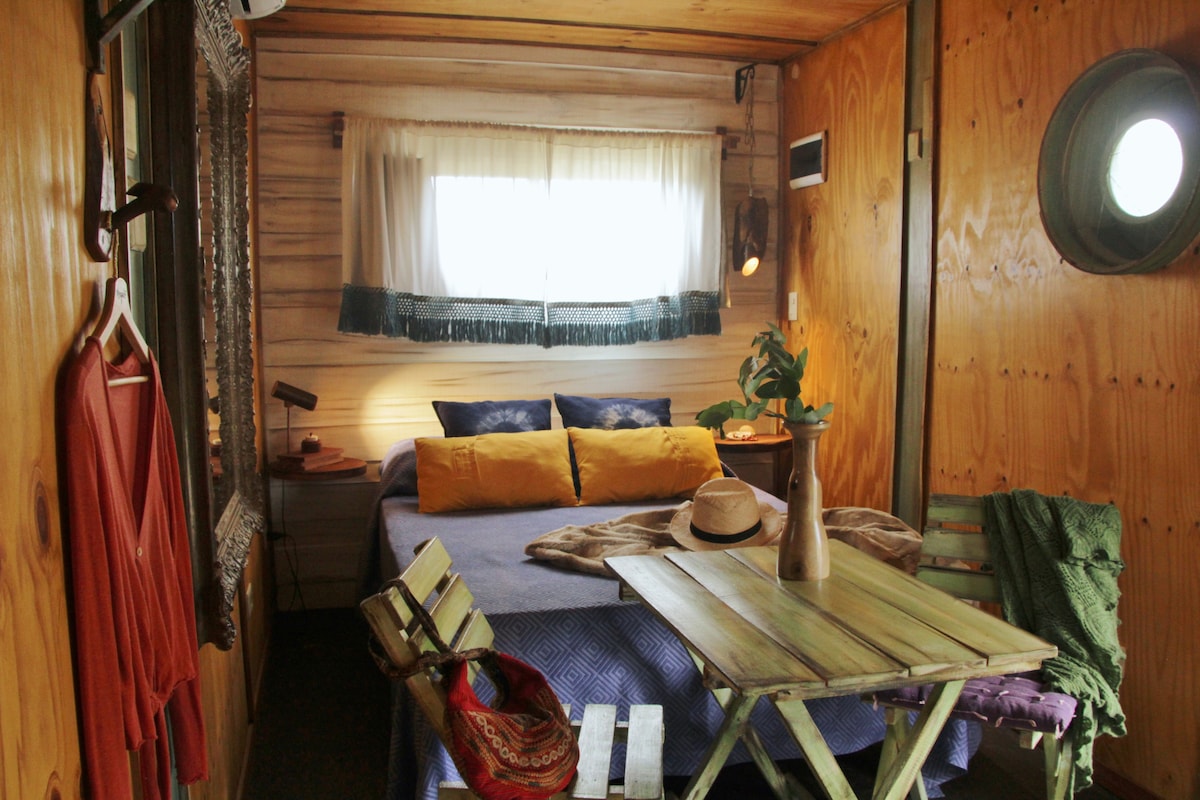 這是一個由木材製成的小木屋。非常溫暖、明亮和浪漫的環境。非常適合情侶、旅客或背包客。位於LA Viuda街區,距離海灘10分鐘路程,距離市區20分鐘(步行距離)