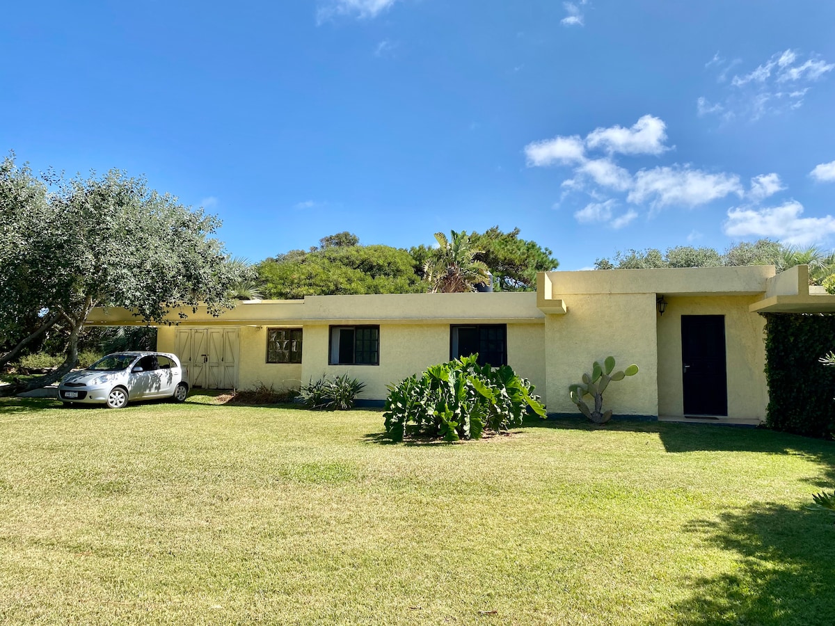 Planee sus vacaciones en el lugar mas tranquilo, campestre y seguro del Balneario Las Maravillas de La Coronilla. A 3 cuadras de la playa, 7 km de Parque Nacioinal Santa Teresa y 23 kms de la frontera con Chuy. Cama Sommier, AC, baño y cocina completo (todo para cocinar). Wifi, tv cable, servicio de café Cochera techada y parrillero., patio con jardín y mucha sombra, completamente privado. Consulte disponibilidad Tambien cuenta ropa de cama y toallas, secador de pelo.