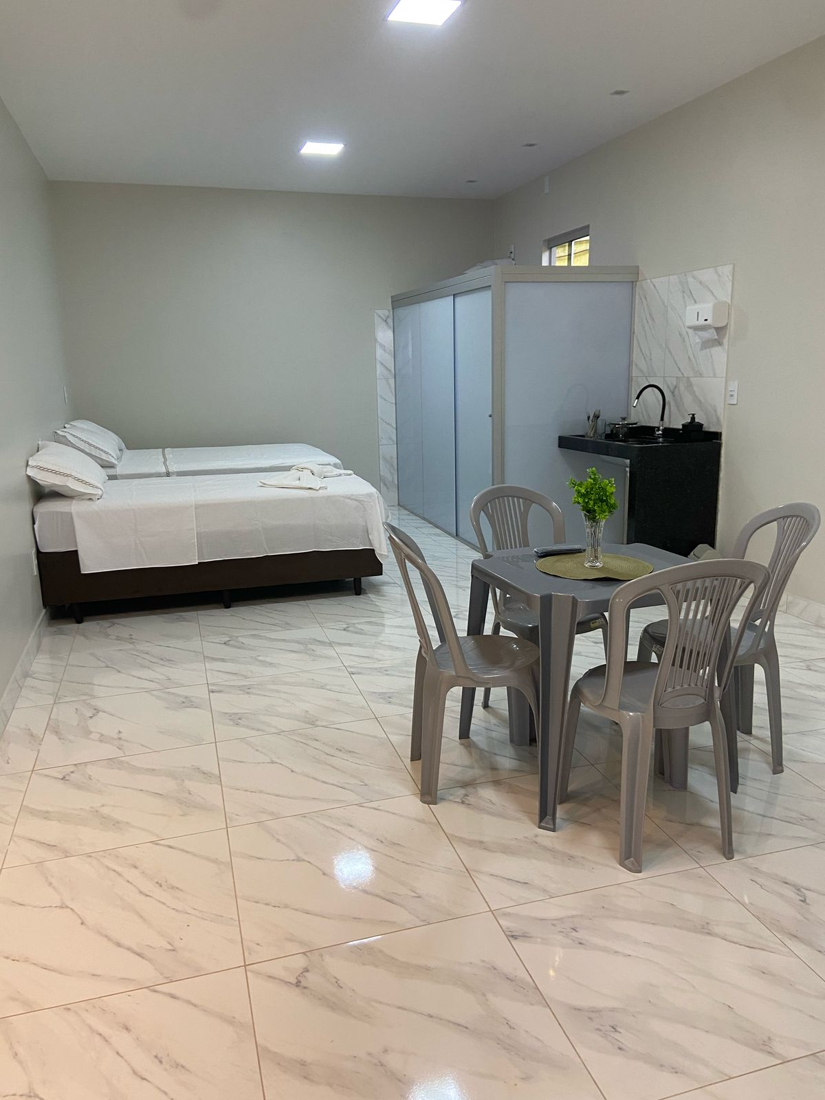 這是一個家具齊全的套房,毗鄰帕爾馬斯最大的廣場「Praça dos Girassóis」,雖然是私人的,但旁邊有其他套房,但環境安靜,您可以步行前往酒吧、餐廳、超市、藥店、購物,也靠近市內最大的醫院。 在我們的住宿中,您會覺得自己住在牧場上,有很多植物和鳥兒在唱歌,真的很安靜! 設有共用服務範圍 還有庭院,可供你停車。