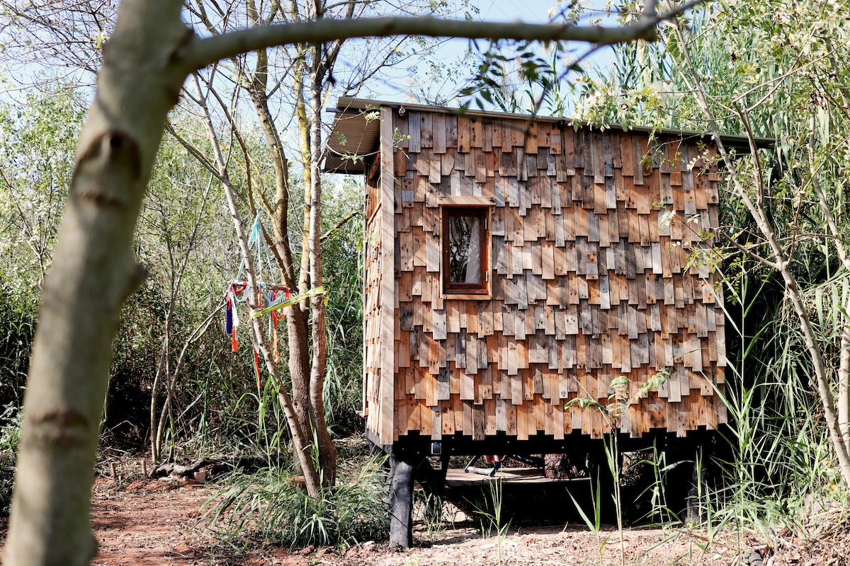 這種美令人心碎,這種謙遜超越了社會上所有的浮華和完美。 在靜靜生長的樹木、歌唱的鳥兒和鳴叫的青蛙之間,找到平靜。 這間小屋由回收材料建造,為夢想家和創作者提供所有必需品:一張舒適的1.2米寬床(適合喜歡在夢想時伸展身體的人或兩個可愛的朋友)、一張寫詩的小書桌和一個早晨咖啡的露台。
