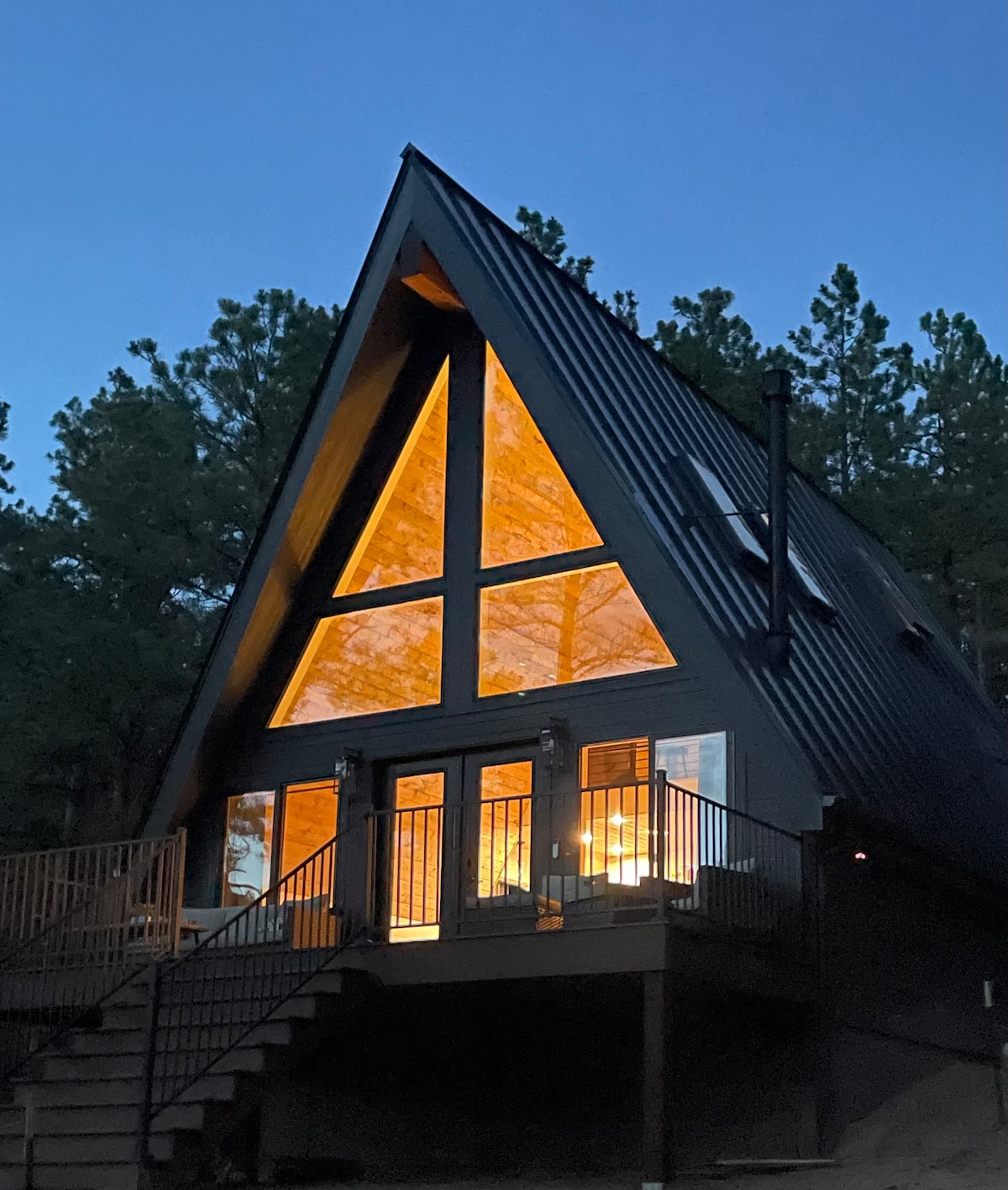 Experience a true Colorado getaway with this custom built Scandinavian 🇸🇪 inspired A-frame, nestled on the Palmer Divide, located only 15 min to Colorado Springs & 30 min to S Denver. You will feel secluded within the pines with views to die for. You might see wildlife walking by while enjoying a cup of coffee or glass of wine in the hot tub or cozied up in a blanket. First bottle of wine on us! Hiking trails are minutes drive from the cabin. Make sure to relax & make lots of memories. 😊