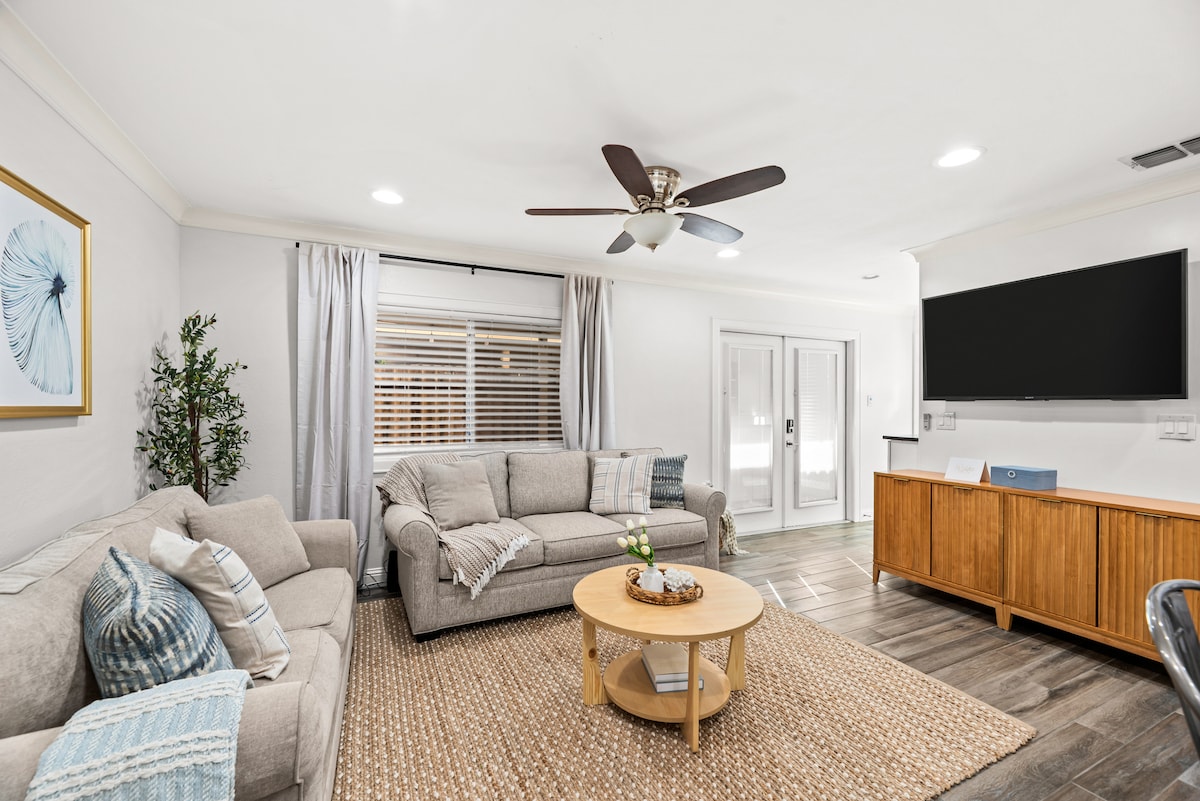 Thoughtfully designed to include everything you might want in a beautiful small space. Guests enjoy off street parking a few steps from a private entrance, a private porch and yard that is directly across from a community park surrounded by a 1 mi. walking loop. Conveniently located less than a mile from HEB and some of our city's best restaurants/shopping in the Lamar Park Center and only a few short miles away from breathtaking bay front views and a 20 minute drive to our warm sandy beach!