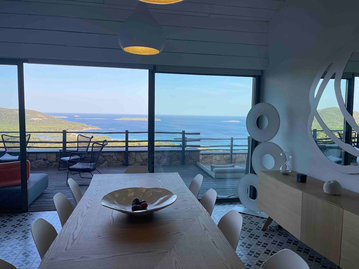 La villa est située sur une colline dominant la plage de Palombaggia. Ses cent mètres carrés de terrasse et sa piscine permettent de profiter d'une vie estivale agréable et de bénéficier d'une vue sur la mer exceptionnelle. Les deux chambres, le séjour et la cuisine ont également la vue sur la mer. Elle se situe dans un endroit calme entouré de maquis. De plus, elle jouit d'un accès privé carrossable (partagé avec d'autres résidents) à la plage de Palombaggia qui se trouve à 1200 mètres.