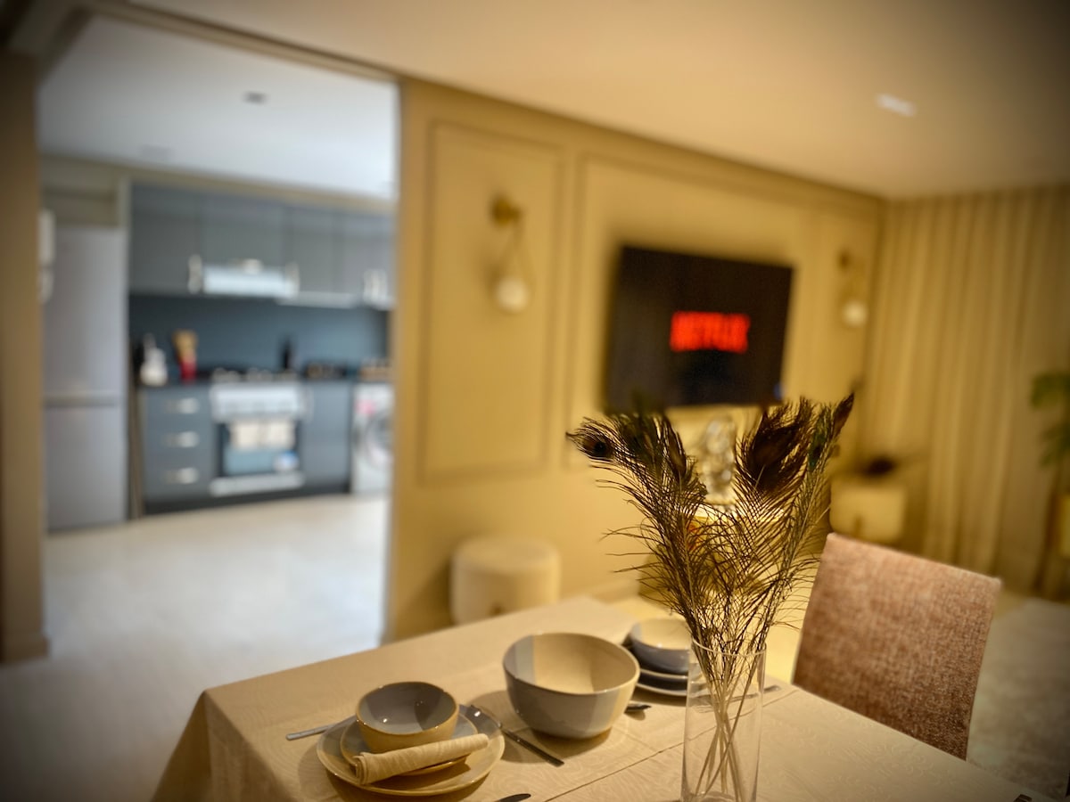 歡迎來到這個現代設計與舒適融為一體的都市天堂。探索寬敞的臥室,配有加大雙人床和精緻的織物、現代化且整潔的浴室、配有電視的舒適客廳、設備齊全的廚房。寬敞的露台是我們的中心,為您提供一個寧靜的避風港。享受優雅的環境,每一個細節都經過精心設計。我們的公寓是您在市中心享受寧靜度假的理想之地。