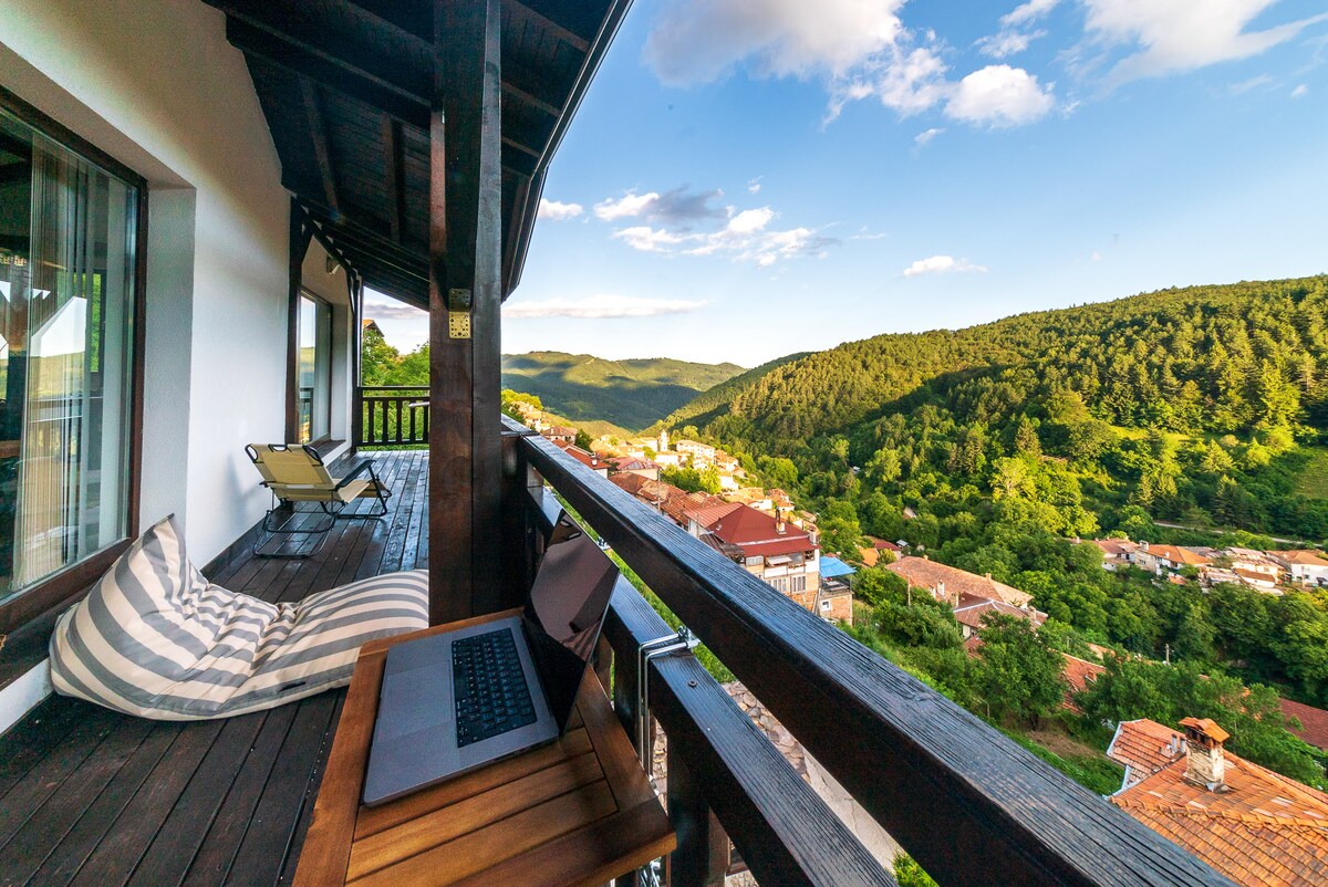 別墅位於羅多彼山脈的中心,提供戶外按摩浴缸和令人驚嘆的景觀。它將現代室內設計與傳統保加利亞風格相結合。它有一個水療區和一個庭院,庭院內有軟體家具和躺椅,還有一個美麗的石頭庭院,庭院內有烤肉設備。一樓有餐廳,配有壁爐和電視、沙發床、設備齊全的廚房,與陽臺相連,配有用餐區。二樓有兩間臥室,為最挑剔的客人提供便利。