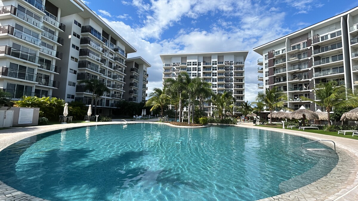 漂亮的公寓:舒適、涼爽和放鬆...提供非常舒適的床鋪和設備齊全的廚房,配有洗衣機和烘乾機,非常適合長期住宿。 公寓設有3個大型泳池和一個兒童泳池、排球場、燒烤區,面向大海,可通往海灘。 優質的互聯網和有線電視服務,讓您保持聯繫和居家辦公,距離Coronado 15分鐘,那裡有超市和廣場。 我們只接受寵物入住15天以上...