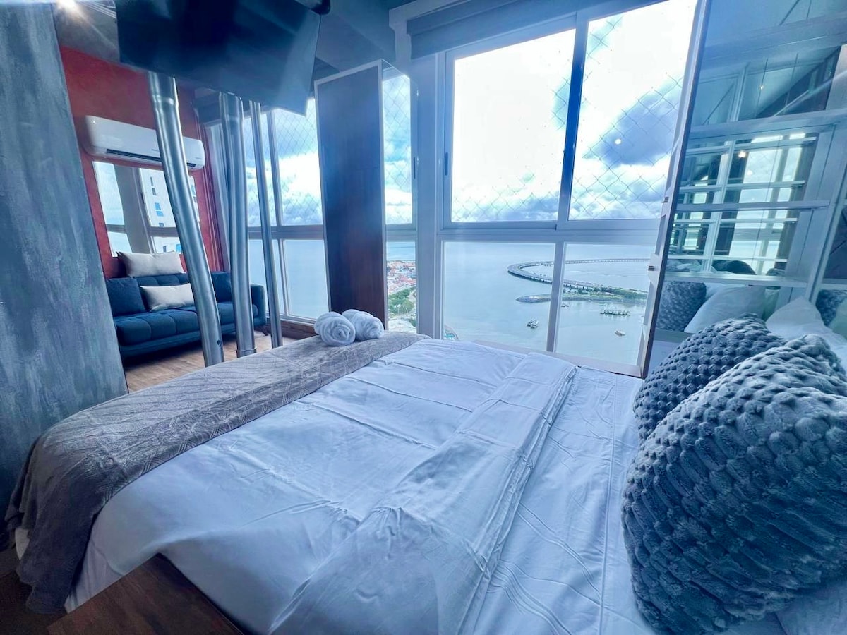 位於Costera Cinta的現代豪華公寓,非常適合行政人員、情侶或家庭入住。 大型海景睡房、私人浴室、廚房和電器。 時尚設計,提供24小時保安、健身室、泳池、4間餐廳、酒吧和空中酒廊。 位置優越,靠近超級市場,巴拿馬城的美食優惠。巴拿馬