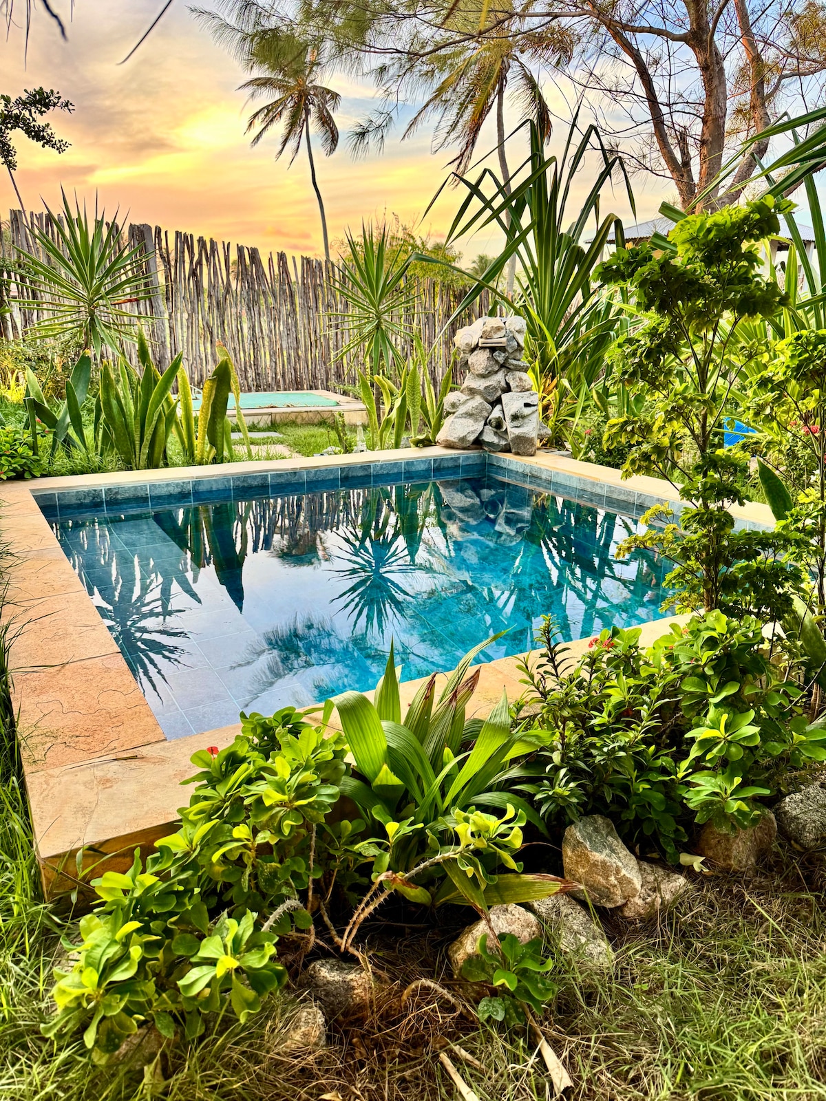 🌿 Um refúgio na Taíba, cercado por verde, cuidado e conforto. O Amaruverde foi pensado para proporcionar uma experiência acolhedora e memorável. Um espaço onde cada detalhe convida ao descanso: quarto organizado, roupas de cama limpas e cheirosas, ambiente leve e bem cuidado. O chalé oferece cozinha equipada, varanda com rede e um jardim amplo com piscina, perfeito para aproveitar os dias com tranquilidade. A poucos minutos da praia, você pode alternar entre o mar e o silêncio do refúgio.
