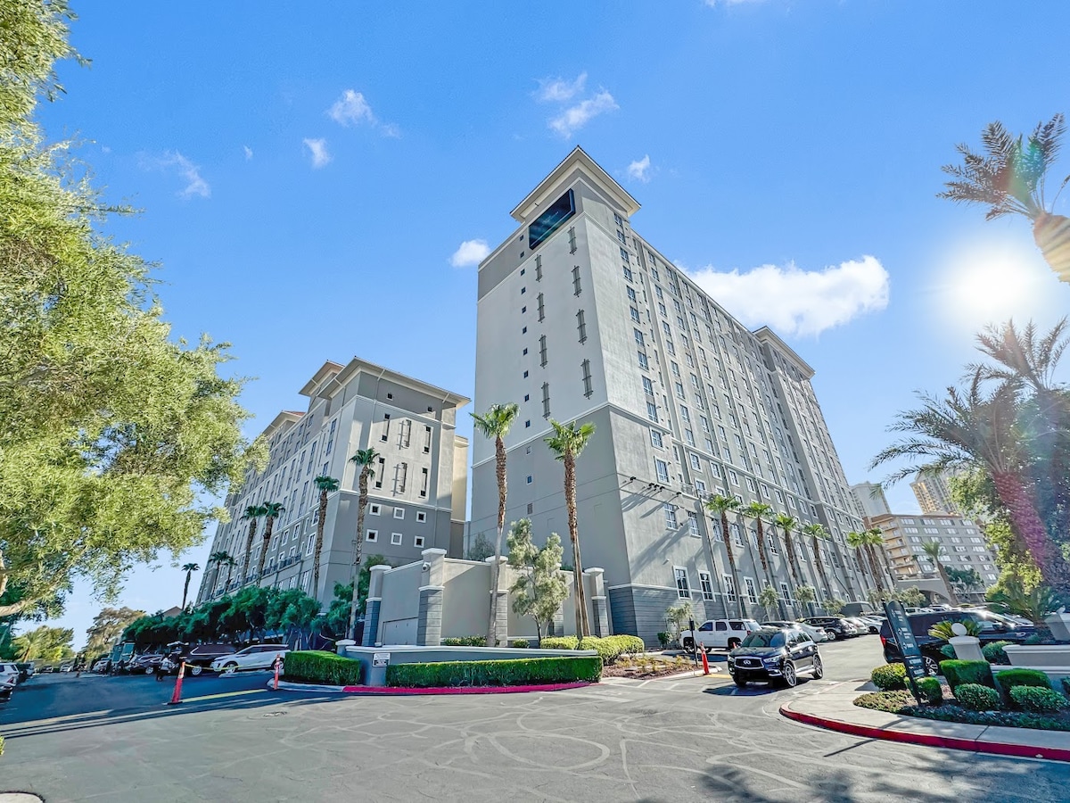 歡迎來到棕櫚34號! 在這間超現代、獨一無二的1居室套房中,體驗拉斯維加斯的風格,享有巨大的環繞式陽台和拉斯維加斯大道的壯麗景色。 這間升級的套房擁有時尚的定制內飾、設備齊全的廚房、方便的咖啡吧,以及落地窗,讓拉斯維加斯的能量直達你的家門口。 享受免費高速Wi-Fi、免費泊車位,並可直達棕櫚賭場。 步行即可抵達大道、夜生活和餐飲!