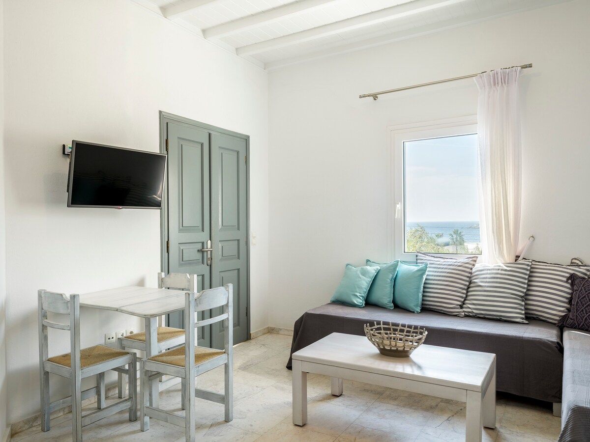 單臥室房屋的總面積為35平方公尺,均設有配有雙人床的獨立臥室、配有客廳和用餐區的開放式廚房,以及可俯瞰愛琴海景的露臺或陽臺。所有房間都有空調。房價包含床單和毛巾,以及沙灘毛巾。除非另有要求,否則每日提供女傭服務,每3天更換一次床單。