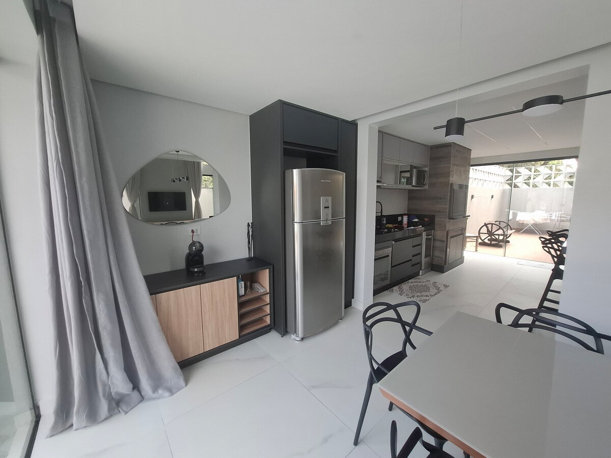 在迷人而舒適的新家中與全家人一起放鬆身心。 結構現代化,設計精良,太陽能加熱泳池、寬敞的休閒區域、設備齊全的燒烤、配備大金空調的房間,可透過Wi-Fi啟動、燃氣加熱水龍頭和淋浴、24小時監控警報和外部攝影機。 我們提供沙灘車、椅子和遮陽篷。享受美好時光。 距離Ilha do Mel的貨件7分鐘路程。