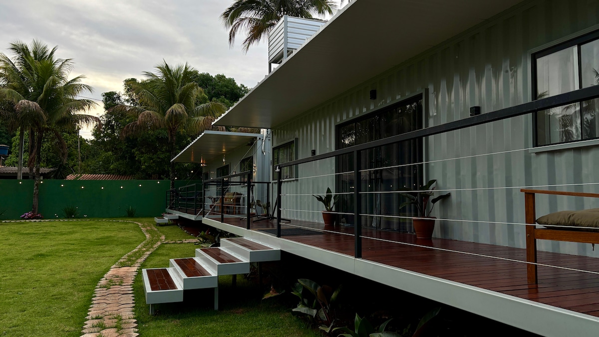 Localizado na Vila Planalto, o Container 01 une conforto, praticidade e natureza no centro de Brasília. Ideal para viagens a trabalho ou descanso, acomoda até 3 pessoas em 2 quartos. Com cozinha completa, ar-condicionado, Wi-Fi, deck privativo e jardim com fogueira, é o refúgio perfeito para quem busca relaxar sem abrir mão da boa localização e do charme de uma Casa Container moderna.