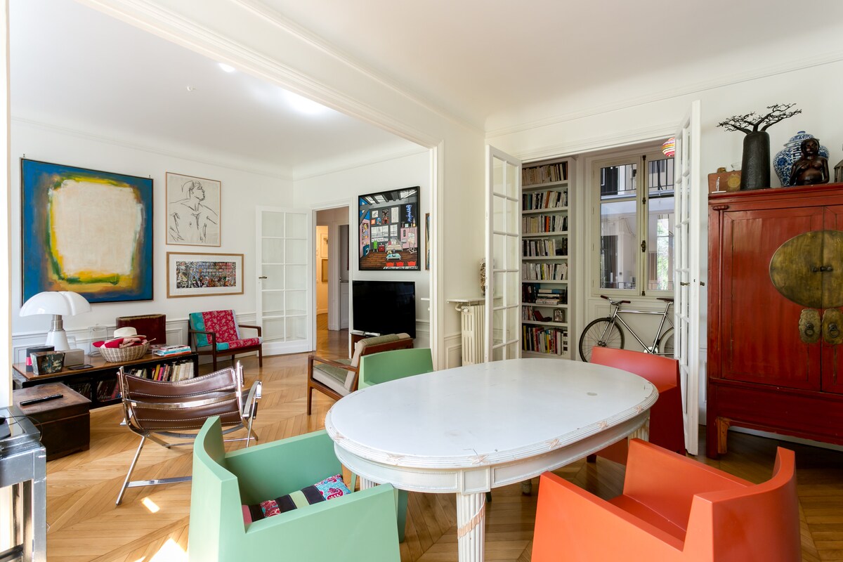 Paris-Auteuil, Grand appartement familial et convivial dans immeuble de briques années 30 revisité de tout le confort moderne. Belle distribution, belles circulations, beaux volumes, 5 pièces, 150 m2, double salon, salle à manger, double exposition, double vitrage, 3 grandes chambres, 3 grands lits, 2 salles de bain, cuisine sur cour, parking, digicode, interphone, gardien.