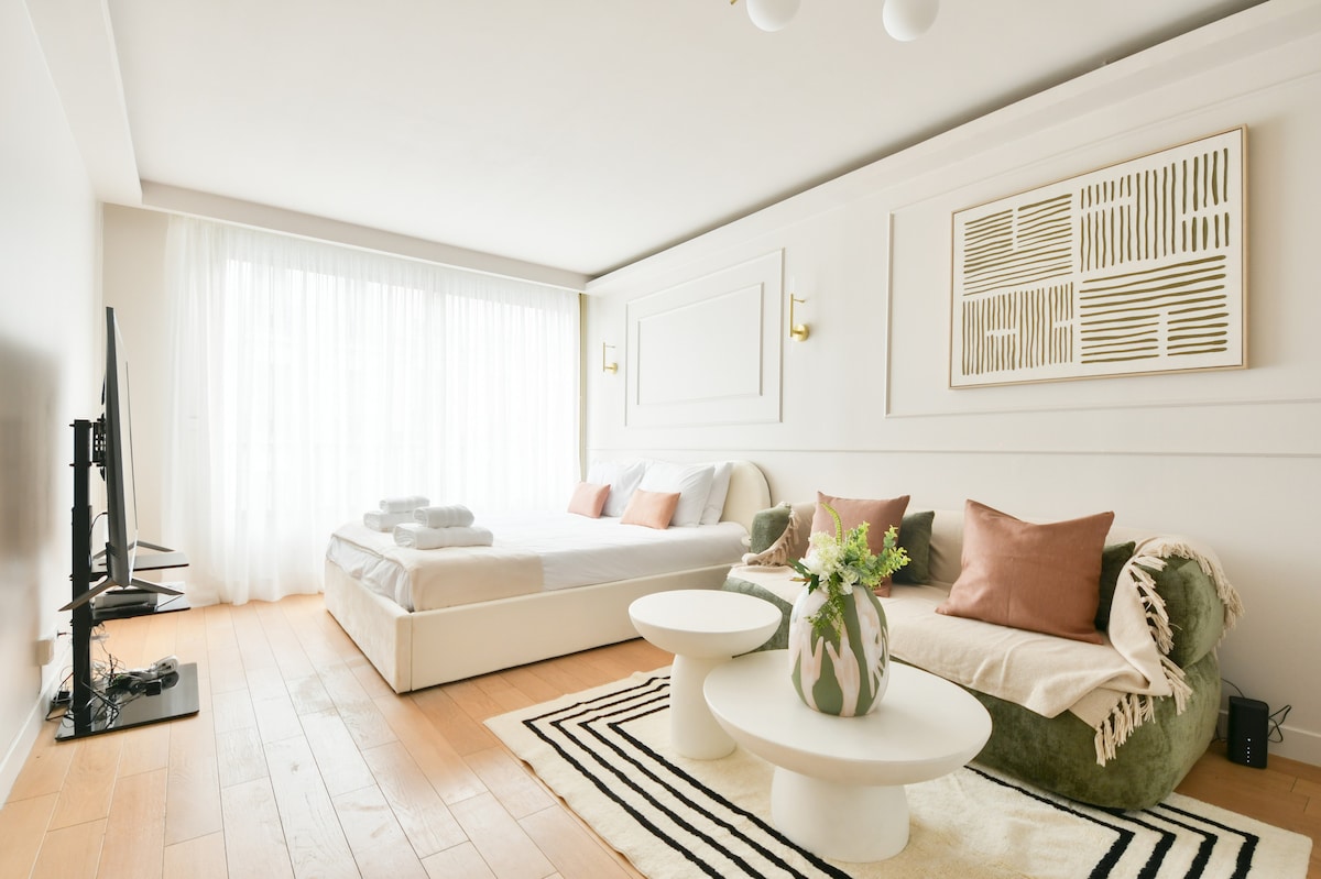 這間31平方公尺的單間公寓位於巴黎市中心,距離香榭麗舍大街和蒙索公園僅一步之遙,於2021年全面翻修。 這套單間公寓有: -雙人牀 -櫥櫃、熨鬥、 -智慧電視 - WiFi -設備齊全的廚房 -洗衣機、清潔/烘乾、晾衣架 -浴室有大型淋浴間、廁所、吹風機 -配備辦公桌的工作空間 步行幾分鐘:地鐵、麵包店、餐廳、洗衣店、迷你市場、藥店。