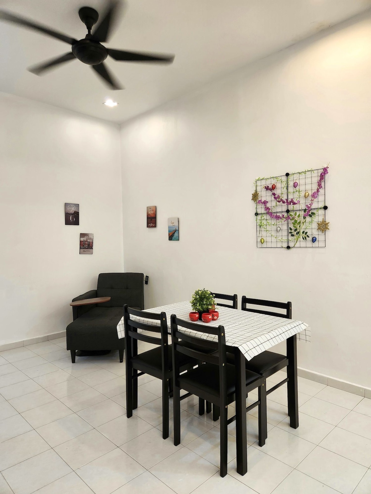 Penginapan bersih dan selesa 3 bilik tidur dilengkapi dengan penghawa dingin •Bilik 1 - 1 katil queen •Bilik 2 - 1 katil queen •Bilik 3 - 1 katil double decker Ruang tamu yang berhawa dingin Smart tv, Netflix, Wifi Mesin basuh automatik, microwave, peti sejuk, peralatan dapur dan memasak 2 bilik air yang dilengkapi heater Parking lot untuk 2 kereta Lokasi yang sangat strategik : 3.5 km ke UTHM / KKTM 10 min ke Pekan Ayer Hitam 30 min ke bandar Batu Pahat