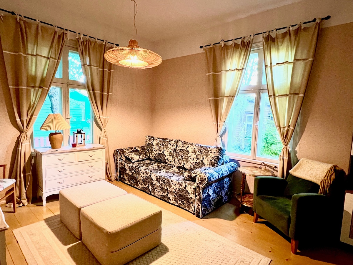 這間舒適的公寓距離海灘步行 5 分鐘,距離市中心步行 15 分鐘。 公寓非常適合家庭和情侶。 對面有一家小雜貨店。 您有一輛車的免費停車位和免費WiFi。 您可以額外付費租用桑拿或戶外按摩浴池。 在夏季( 6月、7月、8月)舒適的花園咖啡廳開放期間,我們每天8: 00至11: 30提供自助早餐,需額外收費。