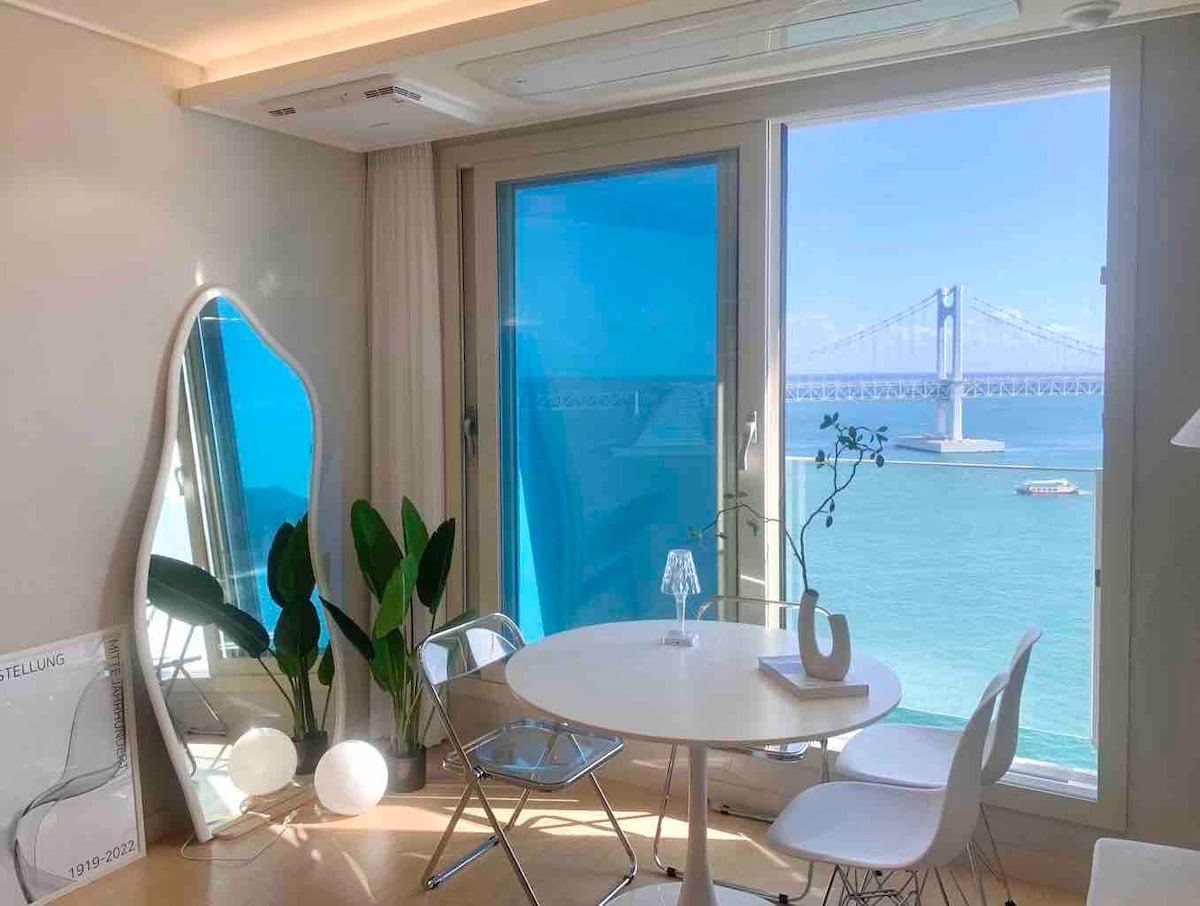블랑광안•광안리1등•고층+넓음•바다1초•완벽한광안대교파노라마오션뷰•침실2•무료주차•퇴실연장