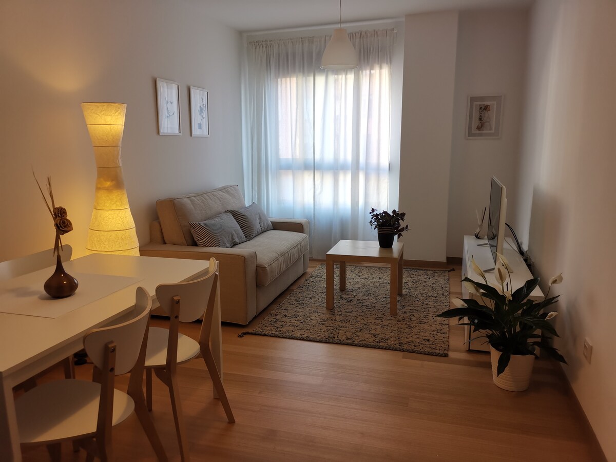 Gracias a la ubicación de este céntrico y muy luminoso alojamiento lo tendréis todo a mano. Situado en la parte moderna de la ciudad tiene restaurantes, tiendas y supermercados alrededor. Está a 15 minutos a pie del casco histórico, a 20 da la Catedral de Santiago y a 7 de la Estación Intermodal de trenes y autobuses que también tiene conexión con el Aeropuerto. Hay un Parking público justo debajo con tarifa de 8€ cada 24 horas. El edificio tiene 2 ascensores y hay farmacia y lavanderia al lado.