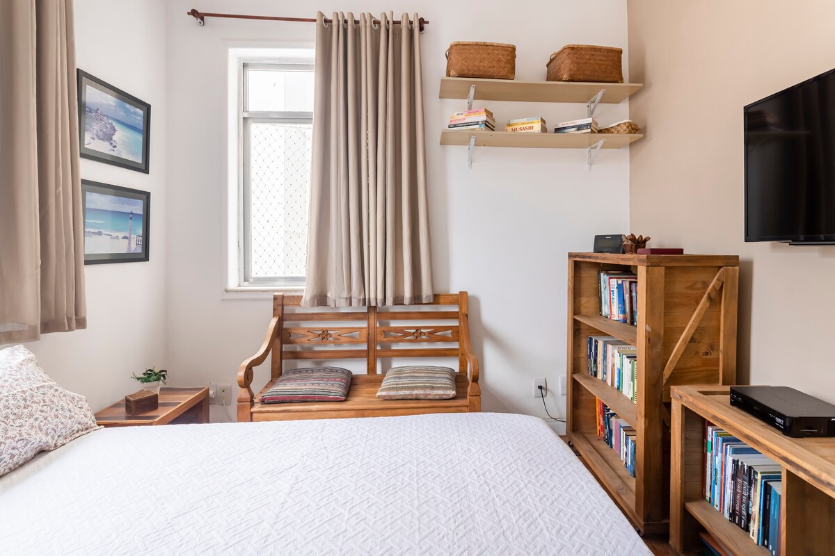 獨立的獨立公寓,坐落在伊帕內瑪中心,在住宅和寂靜的街道,舊和布科利克建築,周圍有很多綠色。 單間公寓內有一張雙人牀、配備熱水淋浴的獨立浴室、迷你吧、配備抽屜和空調的梳妝臺。 它在三樓,沒有電梯。 大樓距離潟湖只有1個街區,步行8分鐘即可抵達伊帕內瑪海灘,附近有很多商業,還有許多美食選擇,如酒吧、餐廳、市場等。