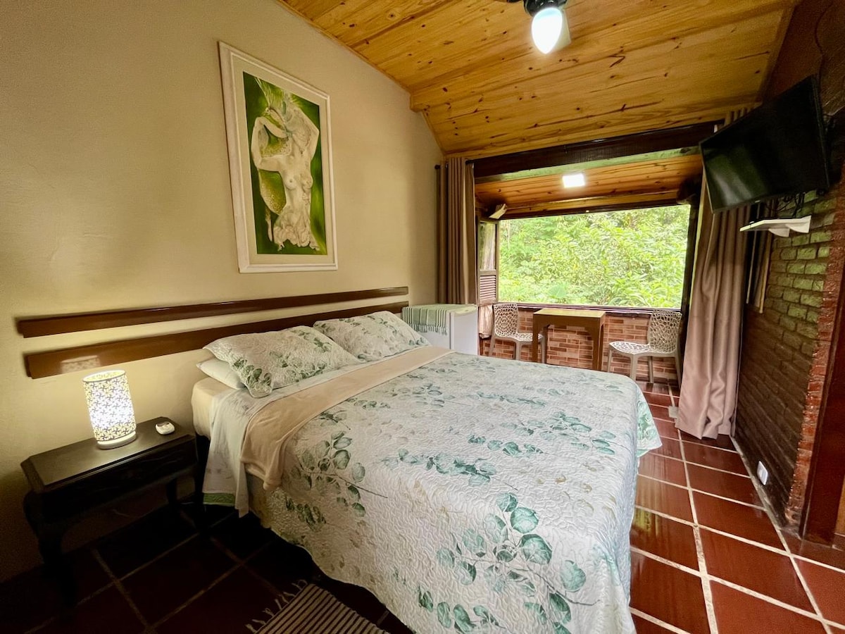 森林中的簡單與優雅。我們的套房提供獨立入口、舒適和安寧。 您將擁有一個迷你吧和基本設施(咖啡機、水壺),可供輕食和早餐。我們距離露營俱樂部 250 公尺,那裡有小徑和水井,水清澈見底,還有一家餐廳。Serrinha 是一個 APA(環境保護區),因此我們不接受寵物,並且我們會照顧動植物。