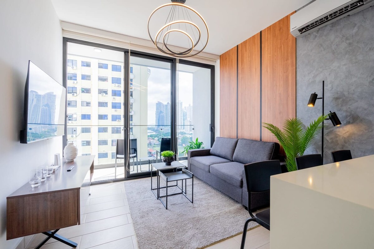 ➤ Bright ✨ and beautifully decorated apartment with ocean views 🌅, a private balcony and an unbeatable location📍. 🚶🏻🚶🏻♀️Walk 5-10 mins to Restaurants, Supermarkets, Multiplaza Mall, Cafes 🧑🏻💻 Ideal for remote workers , desktop, 750 MB internet speed, 100 Up. ➤ Urban Escape - Building Highlights: ★ Gym. ★ 2 Co-Working Spaces with 500 MB internet speed. ★ Pool on the Rooftop Terrace. ➤ Located in San Francisco, Panama City | Rooftop Pool | Explore the city easily | Uber-Friendly