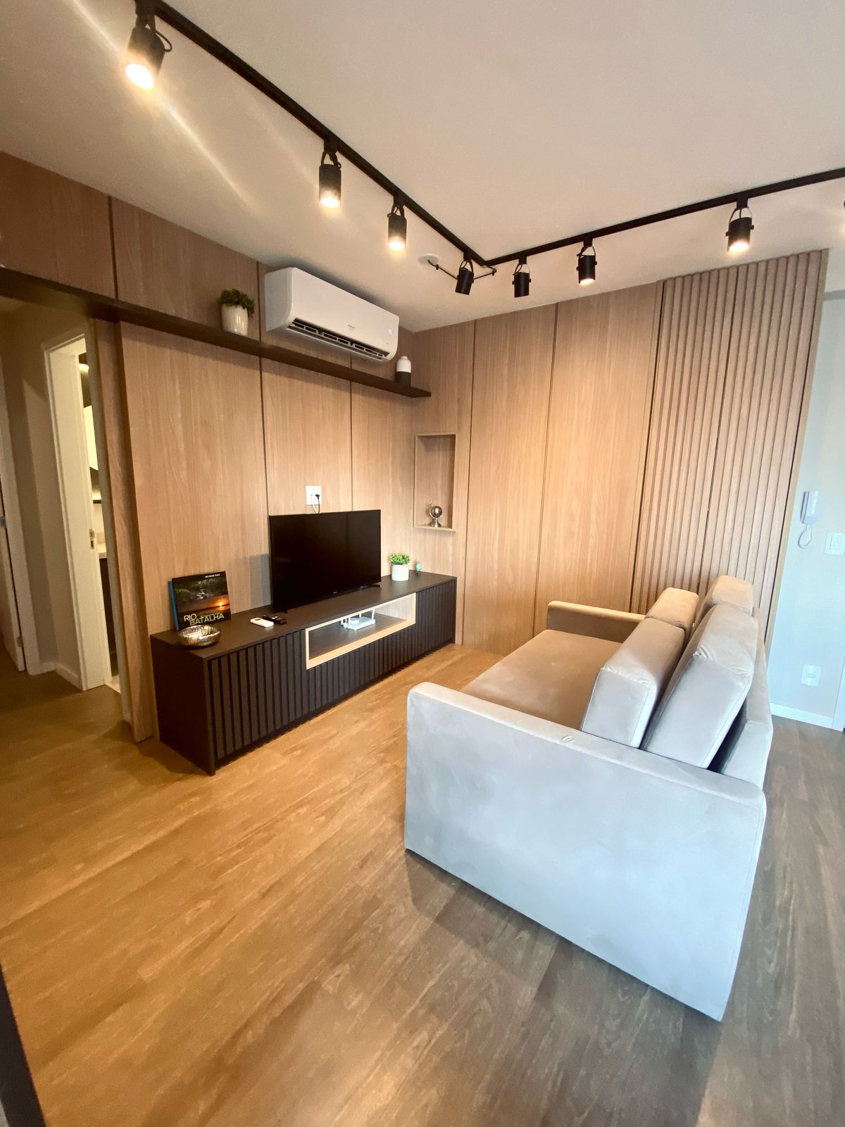 Moderno apartamento de 2 quartos e 2 banheiros (sendo uma suíte). TV smart na sala para curtir seus streamings. A sala ampla é perfeita para relaxar e conta com uma cozinha estilo americano completa. Localização privilegiada, próximo à USP, Centrinho e CPO, com fácil acesso a restaurantes, bares, mercados e shoppings, ideal para quem busca conforto e praticidade em um ambiente urbano vibrante.
