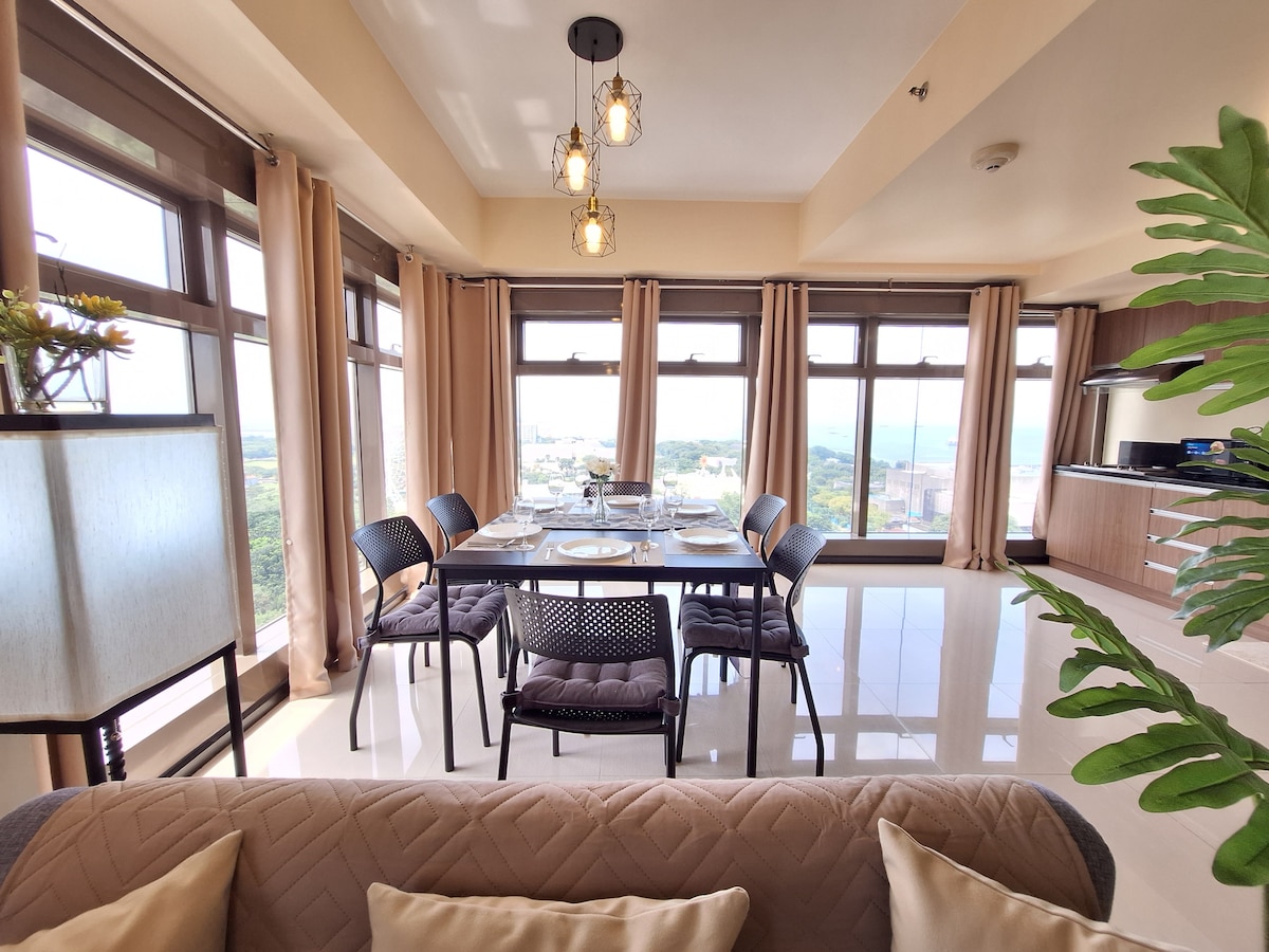 入住位於Poblacion中心的5星級公寓Knightsbridge Residences,享受時尚、室內設計的熱帶套房,享有驚人的城市景觀。享受這間豪華的40平方公尺套房,比該地區大多數20平方公尺的Airbnb房源更寬敞。位於37樓,配備5星級設備、全套廚房、陽臺和完美住宿所需的一切設備:200Mbps光纖WiFi、Netflix、43吋電視、奧運會大小的游泳池、現代化健身房、桑拿房和24小時禮賓服務