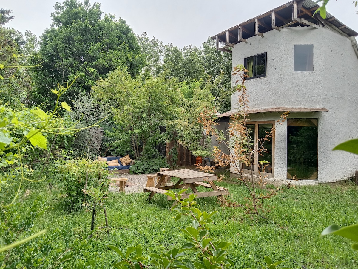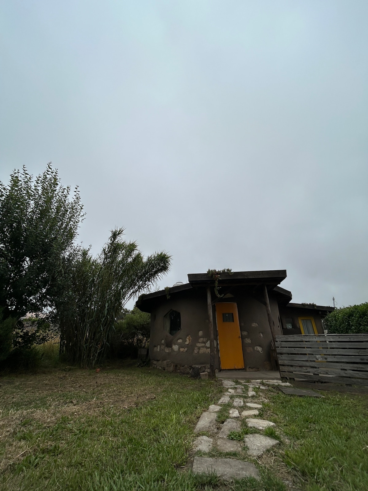 Disfruta de la experiencia de habitar una acogedora casa echa de tierra. La casa es un espacio acogedor emplazado en una zona central muy tranquila. Al menos el 70% son materiales reciclados, entre ellos maderas nativas de la zona de más de 40 años. Sus incrustaciones de botellas de vidrio le dan un toque mágico y sirven como entradas de luz. Naturalmente fresca en verano y cálida en invierno. Tiene entrada y patio privado, estacionamiento, árboles frutales y nativos. Rio a un kilómetro.