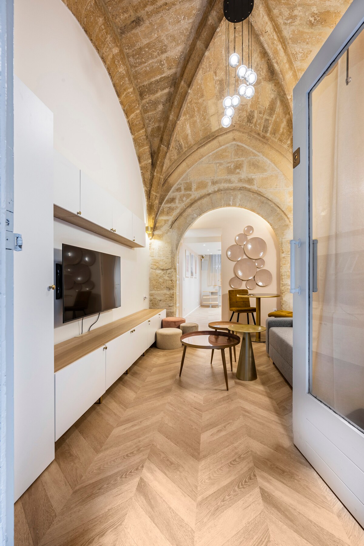 這間公寓位於蒙彼利埃歷史中心「L'Écusson」的中心,擁有華麗的餐廳和開放式廚房,建築風格為 17 世紀,內有兩間 14 世紀的拱頂房間: 一間配有辦公區的臥室,以及一間音響效果極佳的音樂和電影客廳。 露台設有玻璃門,可通往配備漂亮意大利淋浴間的浴室。