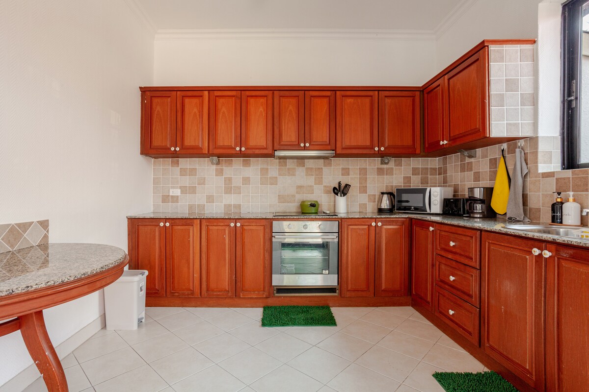 🏡TW泳池别墅 – 现代奢华风格 欢迎来到TW别墅,这是一处融合现代舒适与精致设计的度假空间。无论是家人团聚还是朋友聚会,这里都能为您带来惬意与难忘的住宿体验。 ✨ 舒适空间 单层别墅,建筑面积约160平方米,设有4间卧室和5间浴室。每间卧室均配备独立卫浴,另设一间客用浴室,格局合理,入住体验更为舒适。 🛏 卧室配置 四间卧室中,三间配有1.8米大床,一间配有1.5米床,满足不同入住需求,适合家庭或朋友共享美好时光。 🍳 厨房与餐饮 厨房设施齐全,配备全套烹饪设备,让您轻松下厨,享受居家般的便利与温馨。 🏊 私人泳池 别墅配有私人泳池,水质清澈,是您畅享清凉与放松的理想之地。并提供每周三次清洁服务,确保环境洁净舒心。 🔥 户外休闲 别墅设有烧烤炉及宽敞的户外聚会空间,非常适合与亲友共度欢乐的派对时光。 📺 娱乐设施 每间卧室均配备独立电视,客厅另设大屏幕电视,全屋覆盖高速无线网络,带来丰富便捷的娱乐与连接体验。 🎨 现代风格 别墅采用现代奢华设计风格,简约大气,兼具舒适与优雅,让您的假期更加惬意。