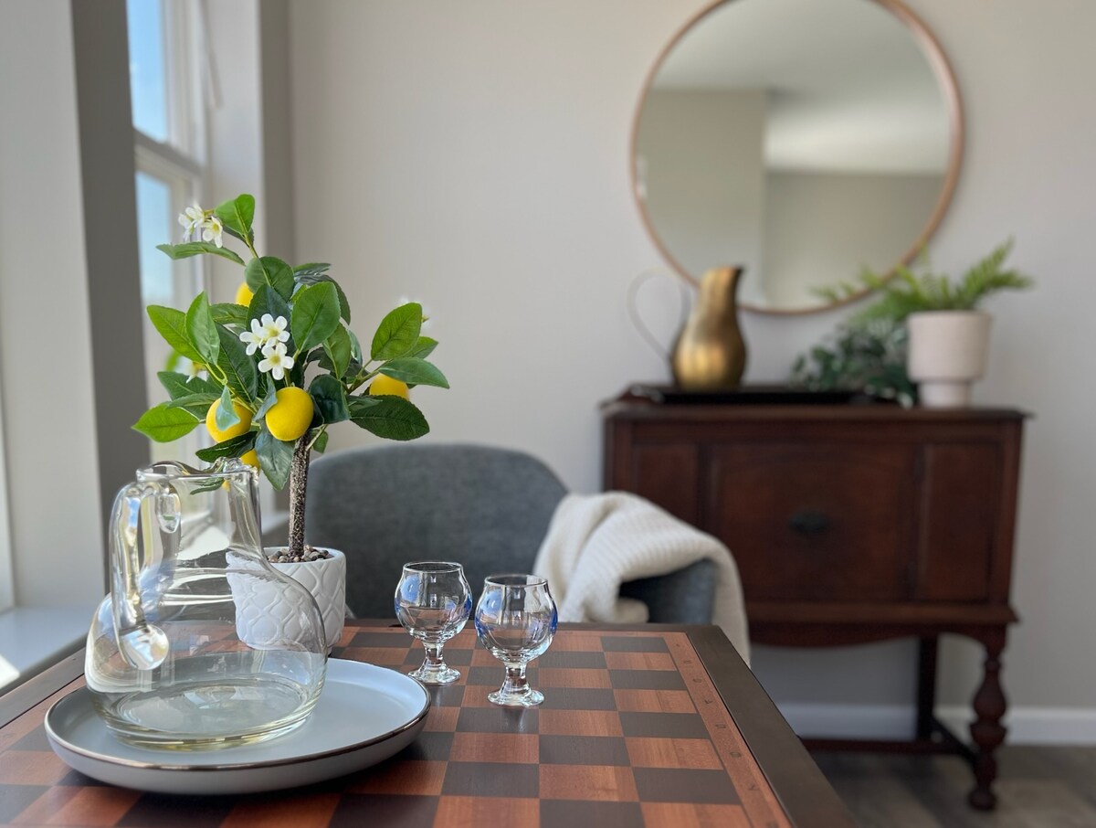 豪華精緻,入住這間靠近州立學院市中心的美麗更新、寬的套房,享受現代化的設備與服務。這間雙層套房配有Nespresso Vertuo咖啡機、加大雙人床和豪華的Ritz Carlton Purple Water盥洗用品,讓您放鬆身心。 位置方便,距離Game Day Shuttles約0.25英里,距離市中心和Beaver Stadium約1.5英里。