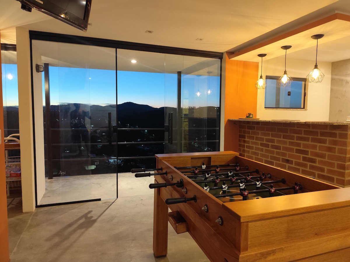 Cerque-se de estilo neste espaço excepcional. Construído e 1.000m de altura, com vista deslumbrante aberta. Lugar para relaxar e curtir momentos a dois. Construída em 2025, com pé direito de mais de 4 metros. Tornou-se um ambiente aconchegante e único, com uma lareira ecológica que divide os ambientes de sala e quarto, com uma grande cama king size com massageador, além de um banheiro cinematográfico. Com vista deslumbrante para um banho em banheira de imersão com sais de banho.