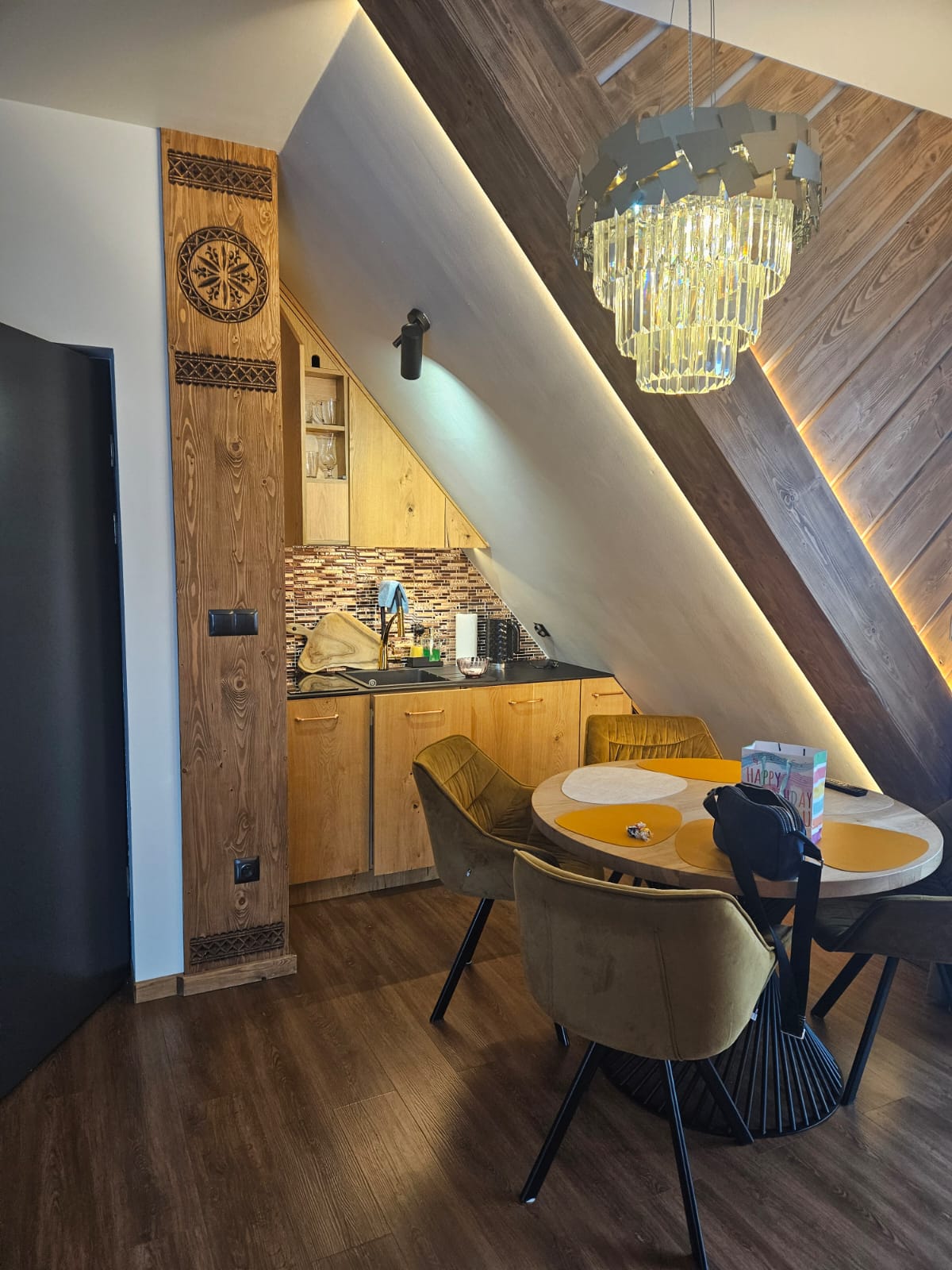Cozy apartment (50 m²) in Zakopane. The interior, decorated in a rustic style, creates a warm atmosphere. An excellent starting point for mountain enthusiasts, located at the foot of Wielka Krokiew. Just a 15-minute walk from the famous Krupówki street, where numerous restaurants and shops await. The nearest bus stop is 300 m away, allowing easy exploration of the area.