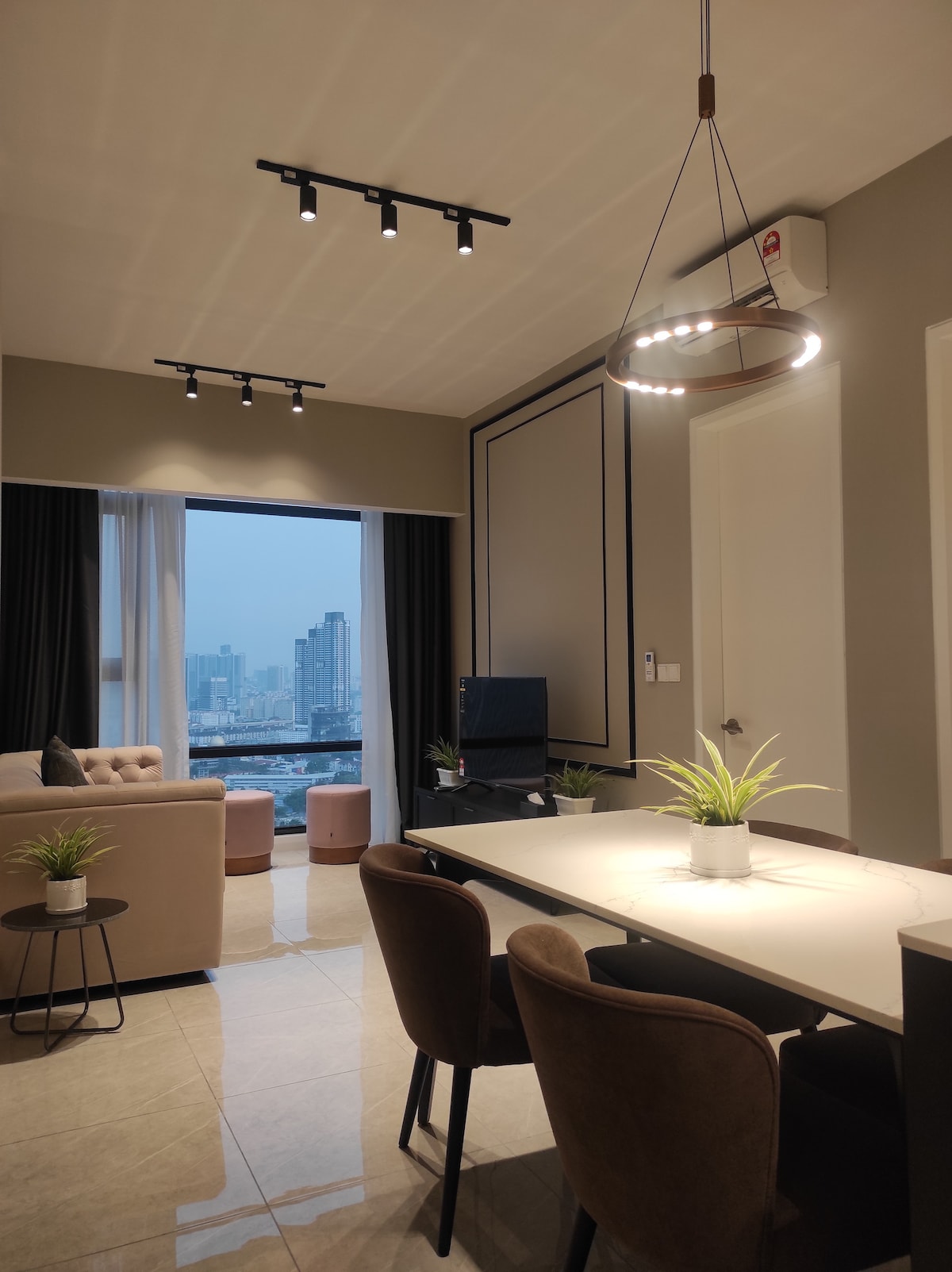 This is a Studio unit located at M city Jalan Ampang. Suitable for couple and small family. Most welcome Digital Nomad for Long stay. Room Offer: ✔one double bed ✔ Fully-Functioning Air-Condition ✔ Smart TV with Netflix ✔ Sofa ✔ Coffee Table ✔ Dining area AMENITIES -Hair Dryer -iron and board -kettle -refrigerator -Microwave -Washing Machine -Shampoo and Shower Gel -Shower Water heater -2 Shower towel -Toiletries -Wi-Fi (High-Speed Fibre Internet 300 Mbps)