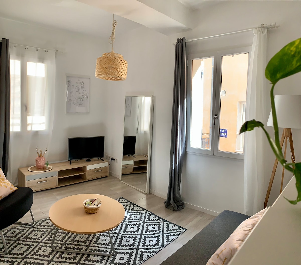 歡迎入住位於三樓的安全、安靜、明亮的豪華公寓,電梯。地理位置優越,距離米拉波大道 (Cours Mirabeau) 和所有便利設施 200 公尺。公寓由一個開放式廚房、一個別的大客廳、一個小陽臺(視野開闊)、兩間臥室(每間都有一張雙人床)、一個大的意大利淋浴間和一個獨立的廁所組成。 設備齊全,有空調,提供床單。