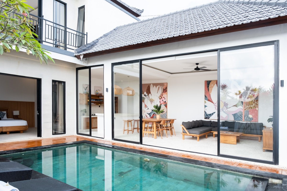 時尚設計的房源,非常靠近Berawa海灘、Finns和Atlas海灘俱樂部(步行2分鐘)。別墅位置優越,步行即可抵達最大的海灘俱樂部和優質餐廳。您可以在夜間聽到音樂和煙花。由於您位於中心,這不是最安靜的位置,但由於這棟別墅藏在另一棟別墅後面,我們仍然接待許多喜歡位於中心的家庭。 別墅有3間空調臥室、一間玻璃空調客廳和1個私人停車位。