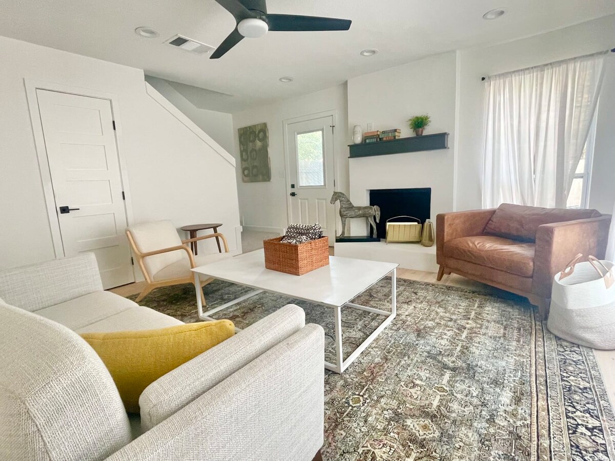 以下是簡介: -快速開車前往MAIN ST -外面有2個停車位 -睡覺時間=放鬆時間 -臥室配有 KING Serta i-Series 床墊和 55 吋電視 -寬敞的客廳,配有4K 70吋電視、ATARI控制台和加大雙人床拉出式沙發 -登入您的串流服務! -室內草地角落配有吊床(放鬆一下!) - 2 個私人露臺空間(是的,兩個!)配有瓦斯火坑 -飛鏢板和遊戲 -棉質寢具 -全新單層公寓 -設備齊全的廚房 -餐廳+小酒館桌子,雙人辦公室和島嶼!