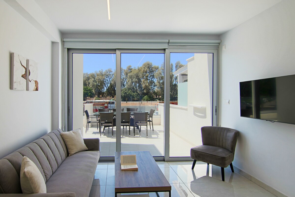 The Brightstay Paphos, a 2-bed apt in Paphos Riviera, is a modern, light-filled retreat. Sun streams through large windows into a stylish, peaceful space with 2 bedrooms, a living room, equipped kitchen, and 2 baths. Enjoy the balcony, pool, and garden—pure calm. Free Wi-Fi and parking add ease to this serene, sunlit haven perfect for relaxation and exploration. Rated 9.3/10 on Booking com from 30+ guest stays