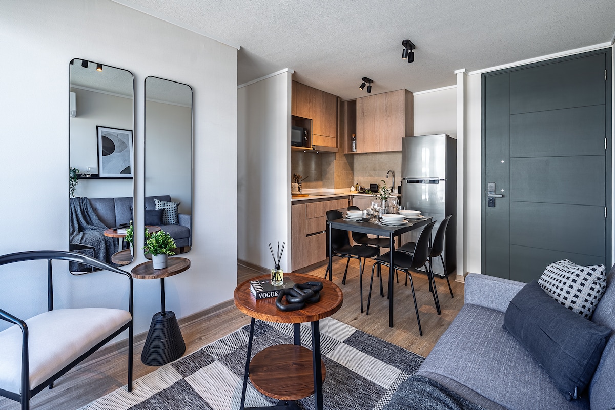 享受現代、明亮和精心裝飾的公寓。 設備齊全,提供舒適的住宿體驗,配有雙人床、沙發床、整合式廚房、智能電視、WiFi和可欣賞清晰景觀的陽台。 位於聖地牙哥安全且交通便利的地區,非常適合休息或工作。 溫馨、實用的空間,注重每一個細節,讓你感到賓至如歸。 地理位置極佳:靠近Ñuñoa廣場和Portal Ñuñoa購物中心、體育中心。交通方便。