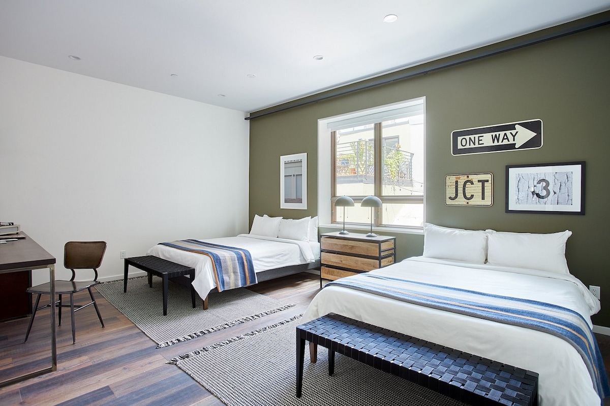 1 Bedroom, 1 Bath 2 Queen Bed Whether you’re here for work, play, or a little of both, this inviting room in the heart of Queen Village is the perfect spot to relax and recharge. Enjoy thoughtful touches like a workspace, a king-sized bed, and modern amenities — all in a stylish apart-hotel building that blends comfort with convenience. Note: This apartment is in a vibrant city neighborhood, and some city noise may be expected.