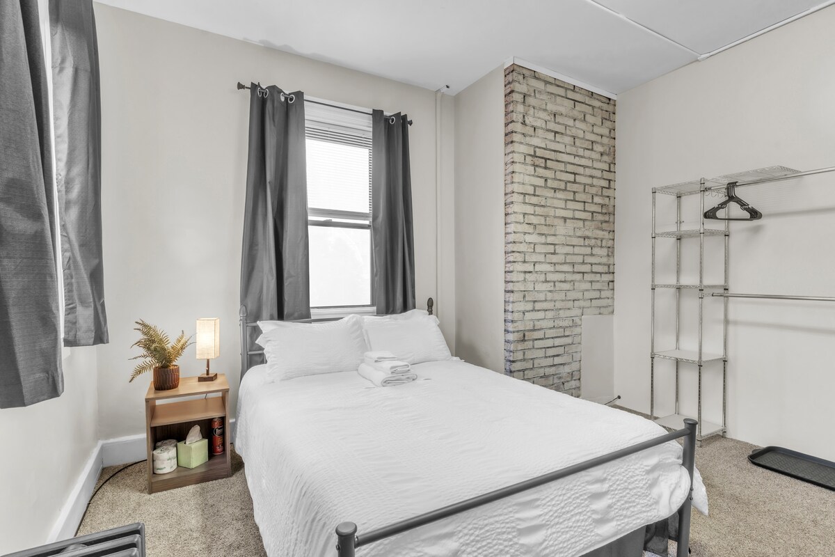 全新、明亮、乾淨!位於賓夕法尼亞州丹維爾市中心的公司商旅住宿。入住前或住宿期間可隨時取消預訂。專為旅行護士、醫生、合約工人和醫學生設計-配有密碼鎖的獨立臥室、公共區域廚房、浴室、客廳、露臺、洗衣房。全包式,配備WiFi、每間房間配備電視、標準雙人床。最少住宿1週。所有房間都有密碼鎖。請自備床單和寢具-免費洗衣。