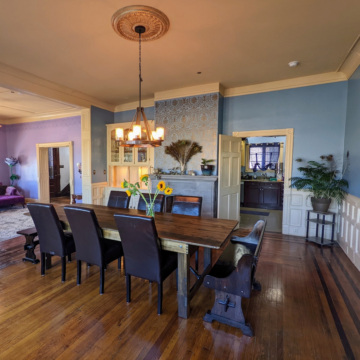 向日葵莊園是一座歷史悠久的維多利亞式豪宅,並融入現代風格。這間建於 1890 年的房源在 2022 年進行了全面翻修,設計時特別考量到團體聚會的需求。公共區域包括大型客廳、可容納十人的餐桌、撞球桌、日光浴室和設備齊全的廚房。每間臥室都有獨立衛浴和遮光窗簾。 這棟房子具有經典的維多利亞式建築,包括高高的天花板和迷人的細節,包括定制設計的彩色玻璃窗。