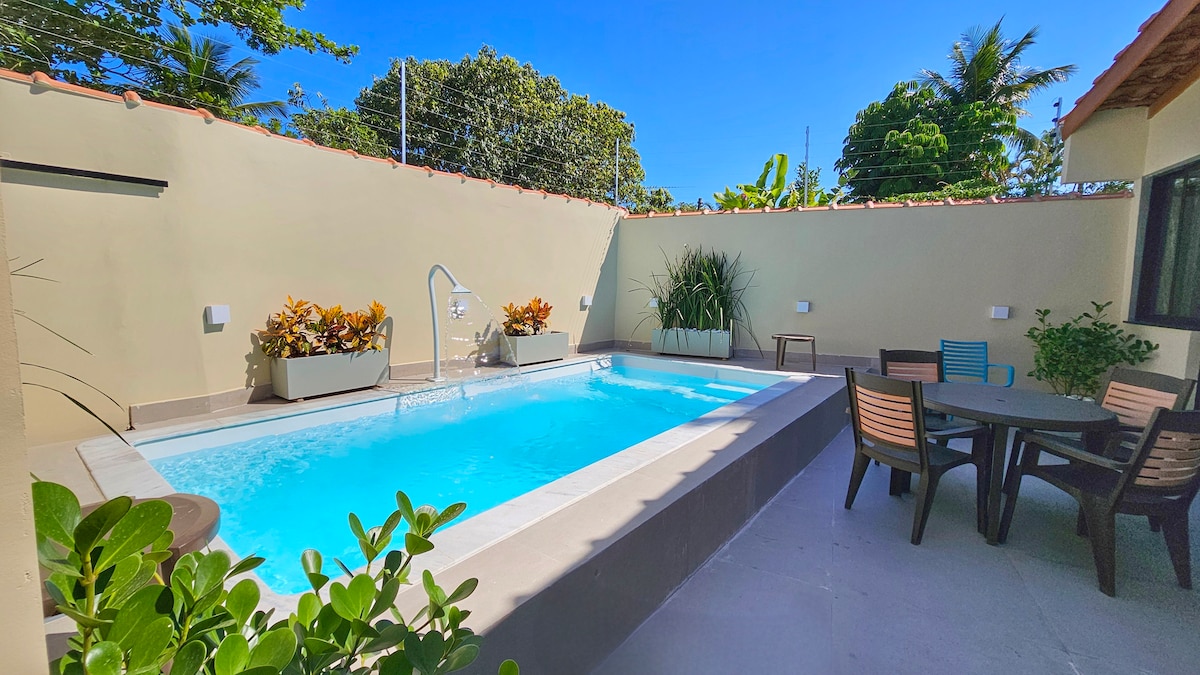 A casa é arejada com pé direito alto, ideal para momentos de lazer! Além disso, ela é inteiramente no piso térreo, ou seja, ideal para crianças e idosos que necessitam fácil acesso Ótimo também para integrações com a família ou amigos já que contém uma ótima área de lazer que possui churrasqueira, piscina, jardins, estacionamento para um carro e quartos cômodos. Localização : 50 metros da praia de pernambuco. Proximidade com o hotel Jequiti, mercado pão de açúcar e padaria tentação. Petfriendly!