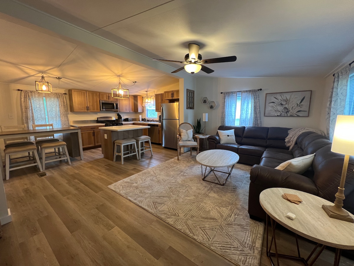 開放式樓層平面圖和包圍式戶外露臺,是親朋好友聚會的好地方。可容納6-8人,三間臥室提供標準雙人床和客廳的額外沙發床、2間全功能浴室、設備精良的廚房。高爾夫球場的美景和湖景。有很多活動可做!享受Pleasant Hill湖、登山、皮划艇、滑雪或室內遊戲、The Round House的戶外火坑。
