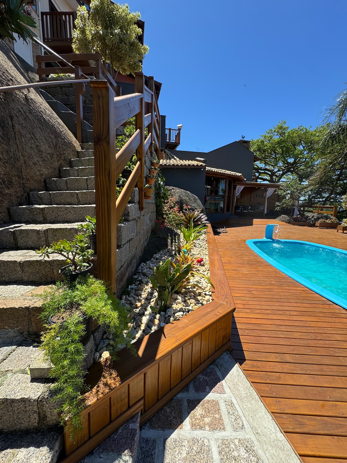 Viva momentos inesquecíveis neste lugar único e ideal para famílias. Casa com deck amplo, piscina, acesso à lagoa, ao lado da ponte Anita Garibaldi. O espaço perfeito para o descanso da sua família