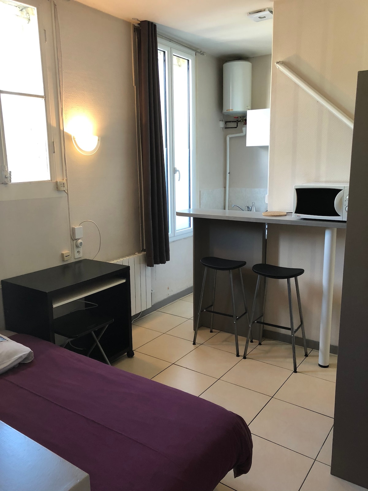 Studio de 18 m2 récent et lumineux situé en plein centre de Talence à quelques minutes à pied des commerces, des restaurants, du cinéma ou encore du parc Peixotto. Le centre historique de Bordeaux est accessible en 15 minutes de tramway. Le campus universitaire est également à proximité. Le studio est attenant à notre maison, vous pourrez y garer votre voiture sur une place de parking privé devant le studio.